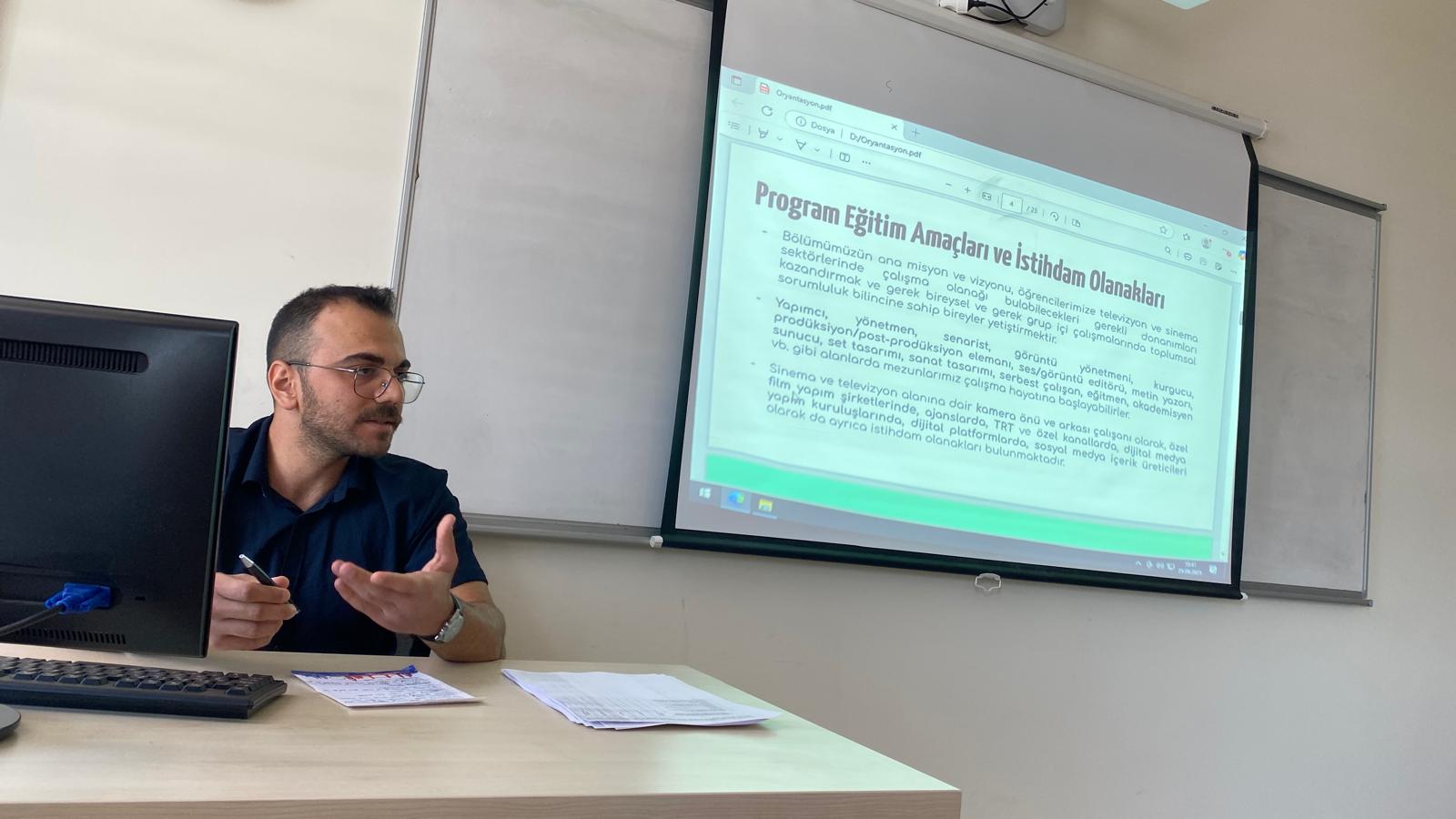 Sinema ve Televizyon Bölümü 1. sınıf öğrencilerine yönelik oryantasyon eğitimi toplantısı 25 Eylül 2025 Perşembe günü bölümümüz akademik kadrosunun ve öğrencilerimizin katılımıyla gerçekleştirildi.