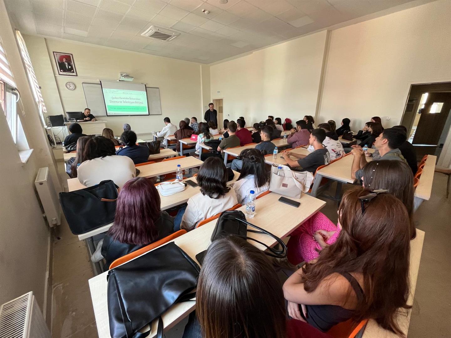 Program kapsamında Arş. Gör. Alperen Furkan Demir tarafından hazırlanan sunum gerçekleştirildi. Sunumda ders programı, bölüm etkinlikleri, uygulama olanakları ve akademik süreçlere ilişkin kapsamlı bilgiler aktarıldı.