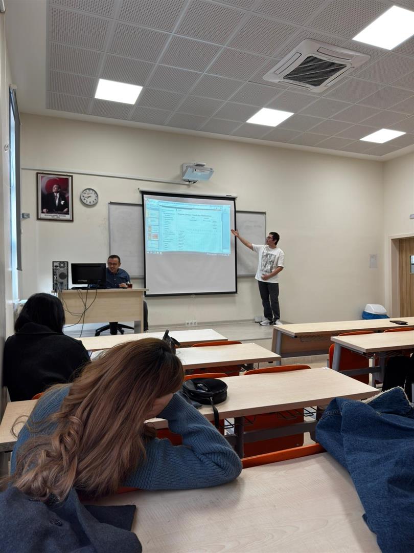Bölüm Kalite ve Akreditasyon Komisyonu Öğrenci Temsilcisi ve 3. sınıf öğrencisi Fatih Karaca, bölümün 1., 2., 3. ve 4. sınıflarına ayrı ayrı gerçekleştirdiği sunumlarla öğrencilerle bir araya gelerek kalite ve akreditasyon sürecini anlattı.